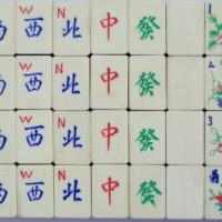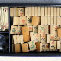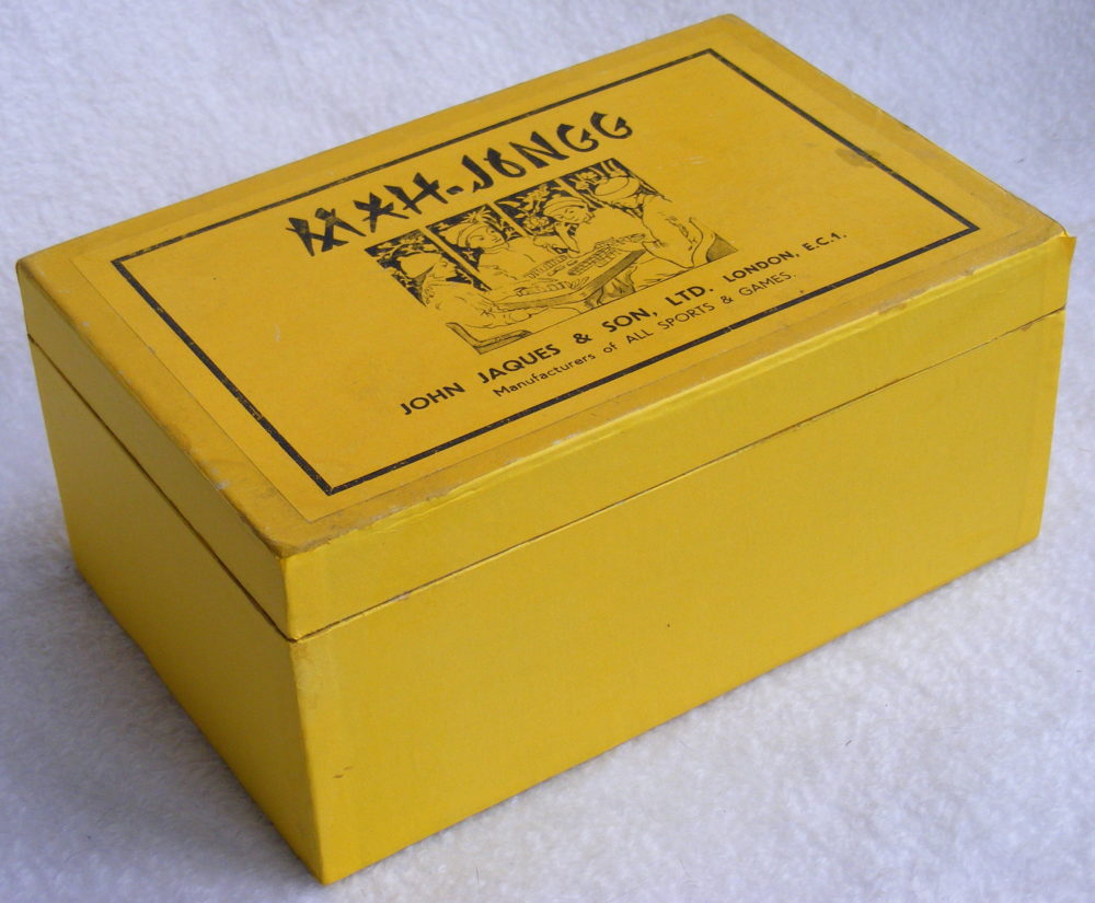 Jaques jumped on the Mahjong bandwagon in the early 1920s, producing medium quality sets, chiefly bamboo tiles in wooden boxes; their logo is very similar to Gibson and Parker Bros, but their signature is a faux ‘chop’ with 3 sinograms.