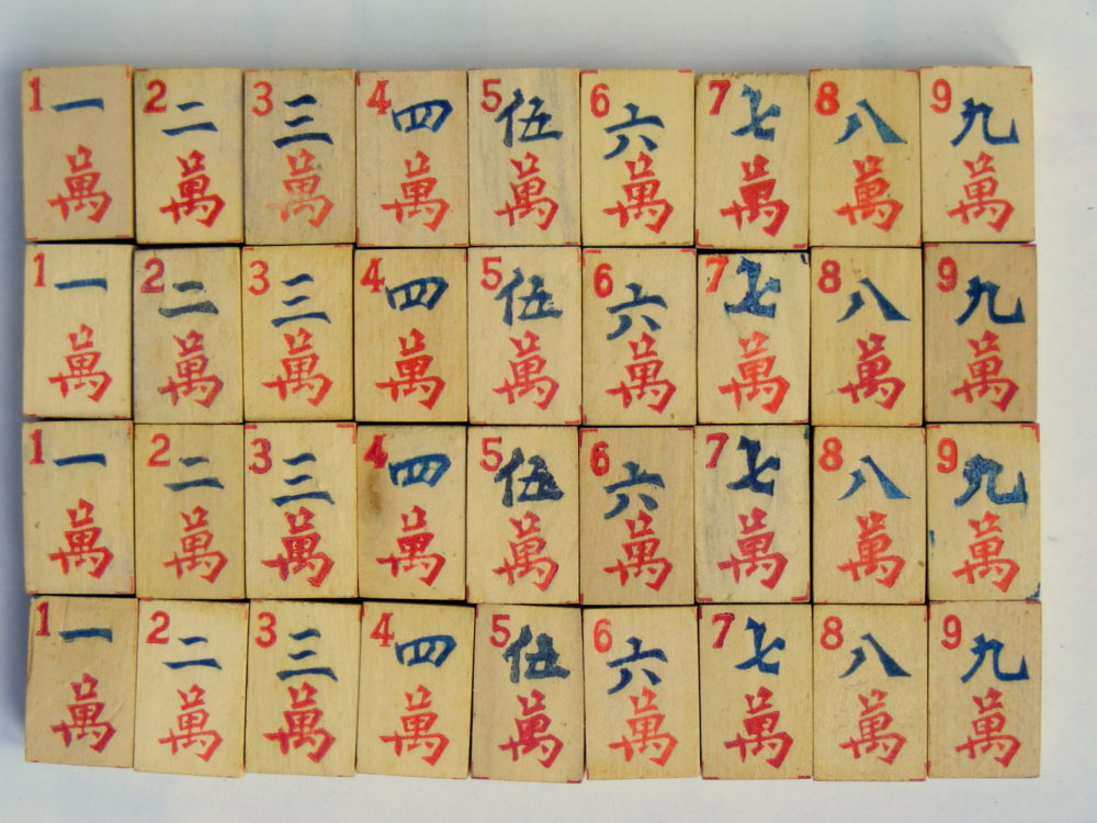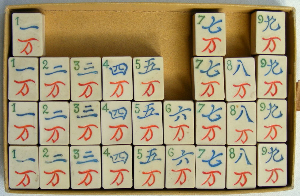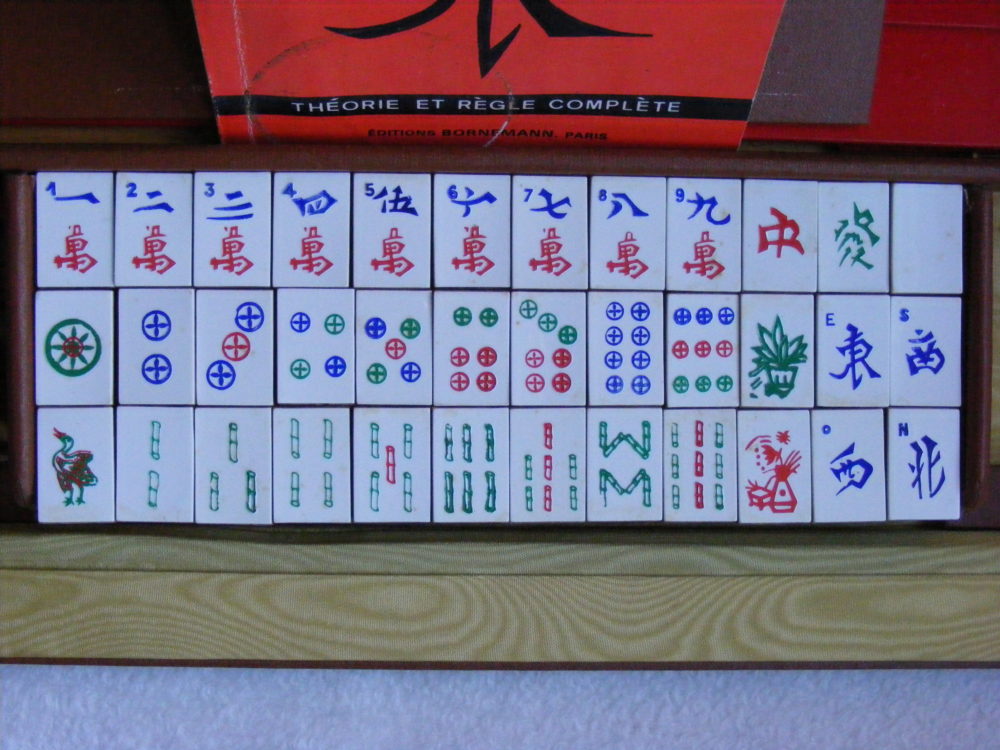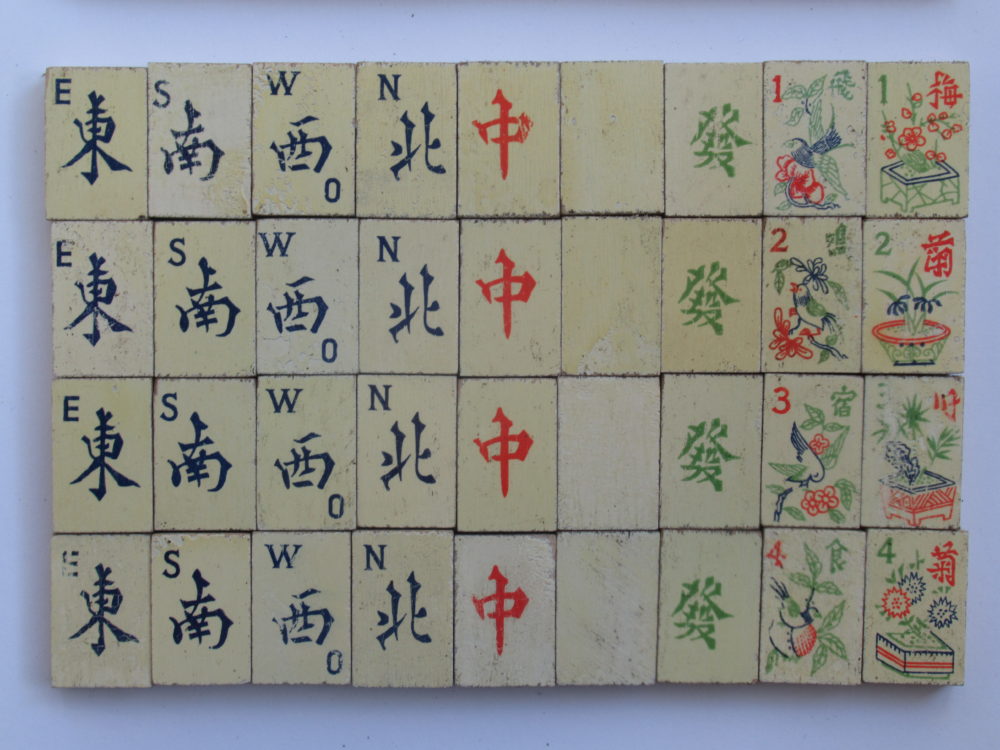 The set was missing 2 tiles (7 craks & E wind) which I recreated (photocopy & mahogany).