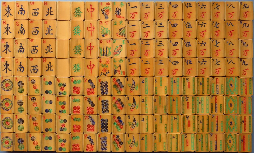 Bamboo was most likely the earliest material used for thick cards, pái, that is, tiles, onto which were engraved the insignia or motifs that constitute the groups in what we now call the Mahjong tile set in the West, and commonly má jiàng pái or má què pái in the East.